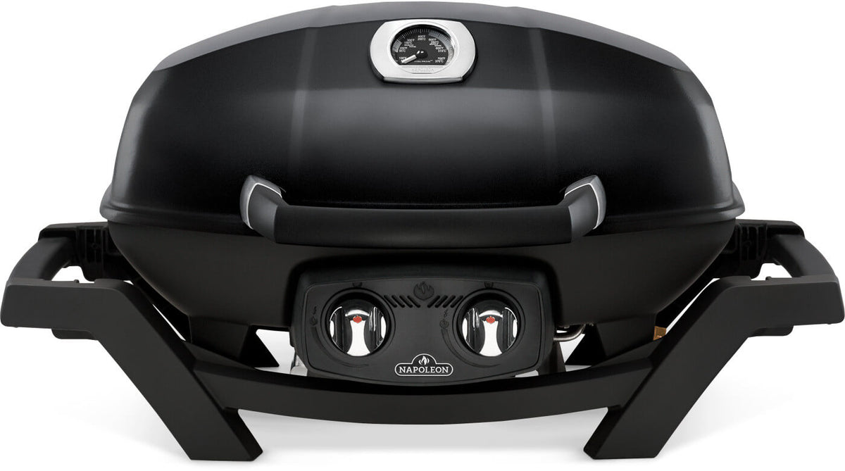 The Napoleon TravelQ™ PRO 285 Portable Natural Gas Grill delivers powerful performance in a compact design. With 285 square inches of cooking space, it can handle up to 17 hamburgers at once—no setup required, just connect to natural gas. Its sleek all-black finish with chrome accents adds style to any outdoor setup, while the high-topped cast aluminum lid allows for gourmet grilling on the go, including roasting whole chickens, turkeys, and even prime rib.