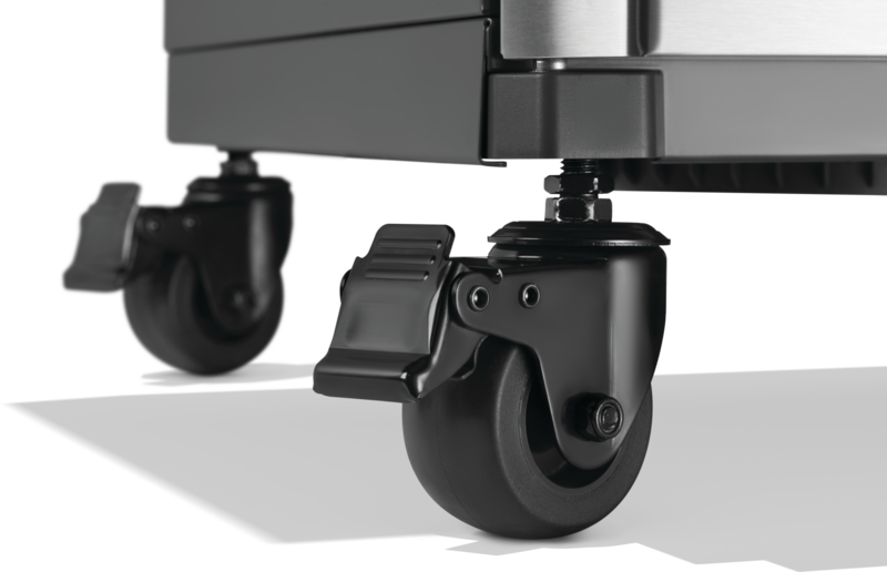 The Rogue® PRO Phantom 30 Inch Rust-Resistant Griddle is the ultimate outdoor cooking companion, combining durability, versatility, and convenience. Featuring a 430 stainless steel cooktop, four high-performance burners delivering up to 33,600 BTUs, and edge-to-edge even heat distribution. The integrated side shelf with removable caddy and prep station lid keeps your tools and ingredients organized, while the folding shelves with built-in hooks offer additional storage. With a dual-pivot lid for cooktop protection, an ergonomic front-access grease tray, white backlit knobs, 4 locking caster wheels and a convenient bottle opener. This griddle cart is designed for long-lasting performance and effortless grilling.
